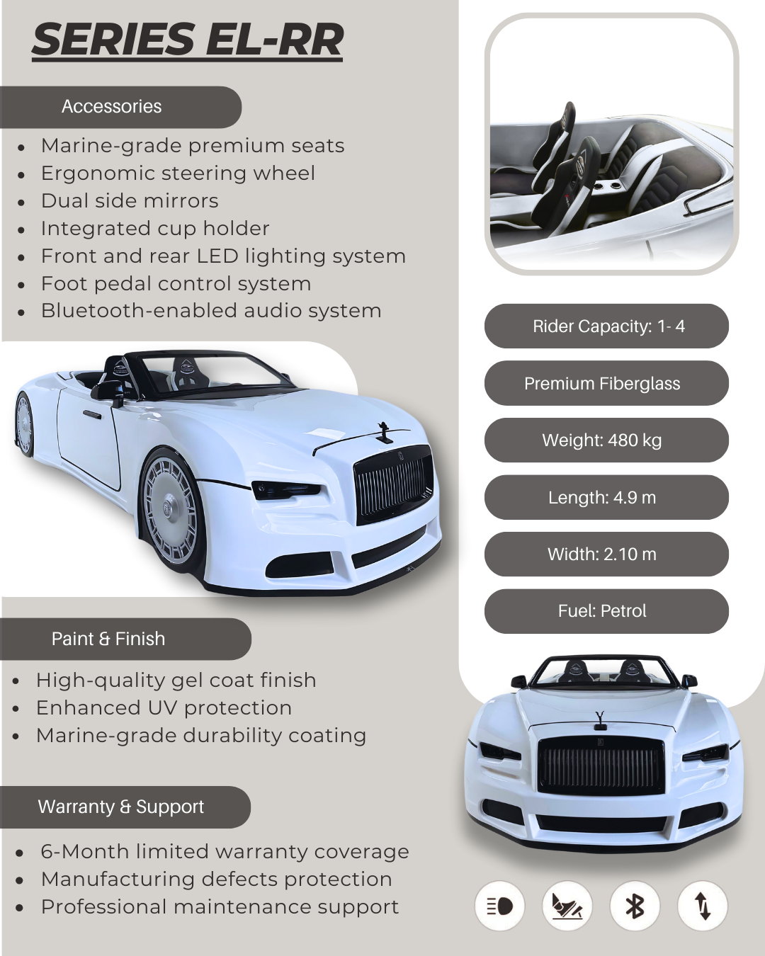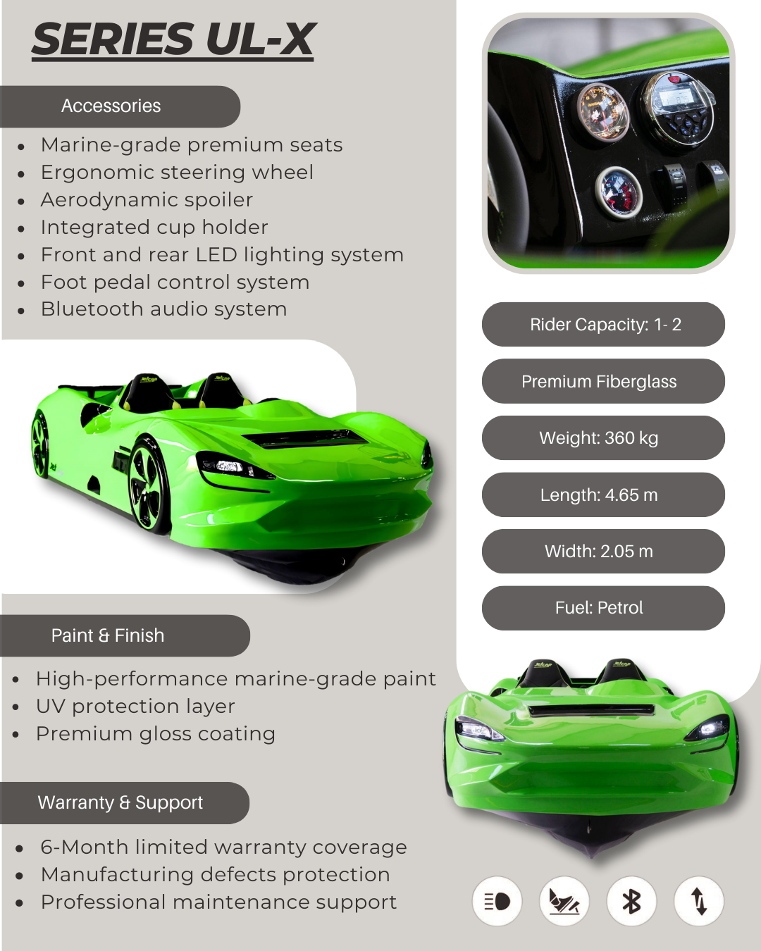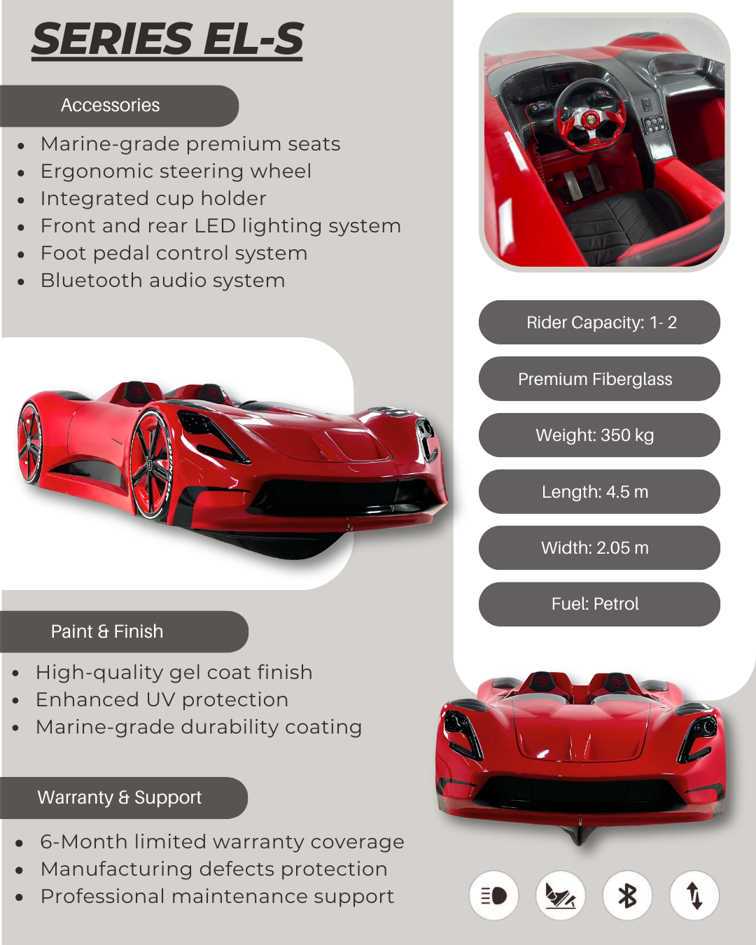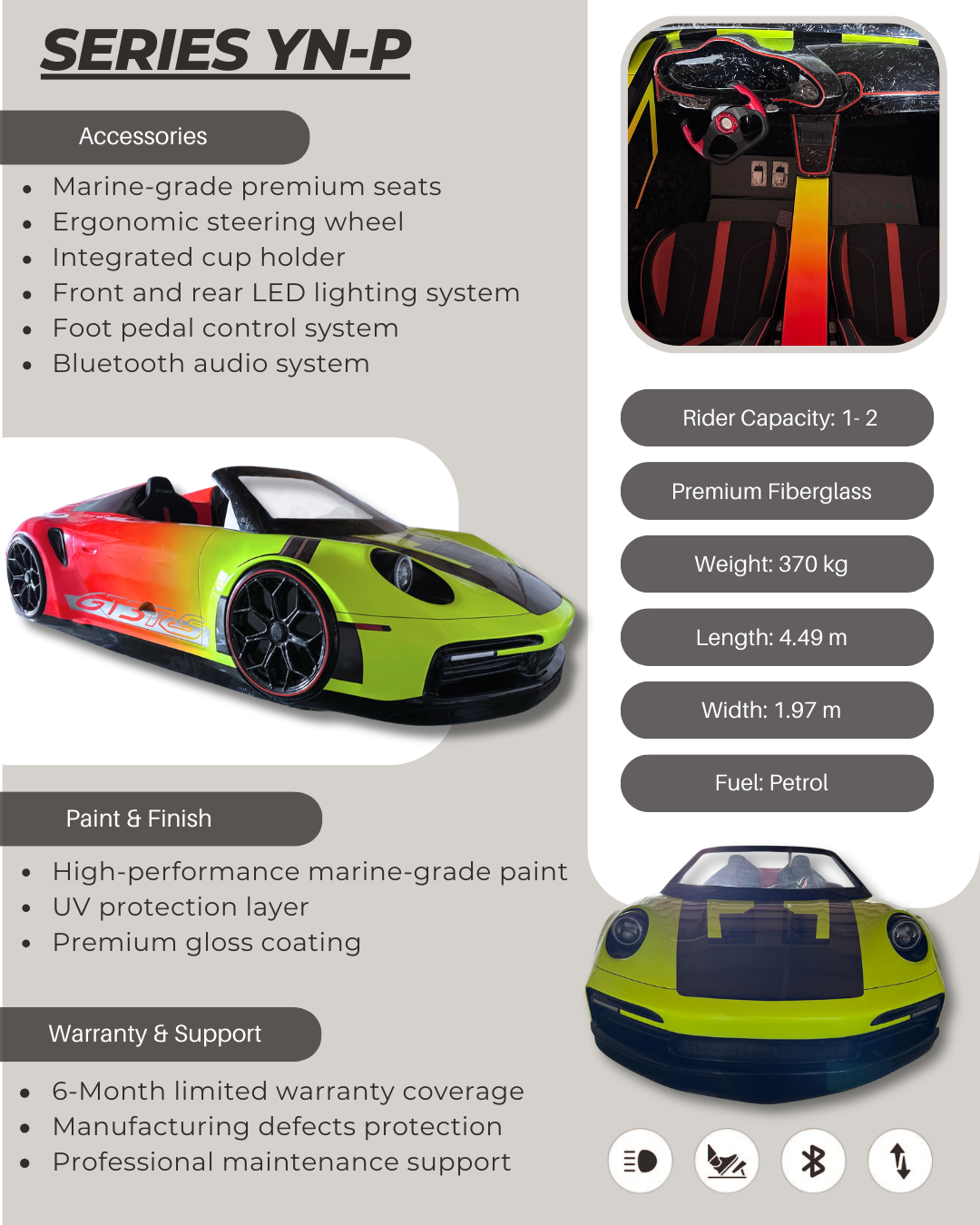 Jet car is a new Water Sports Innovation which transforms a land vehicle into a luxurious sea vessel. A fusion of luxury cars and jet skis. This fiberglass wave rider ensures an exhilarating sea journey, delivering the same speed and style of a luxury car with the unique sensation of driving on water.